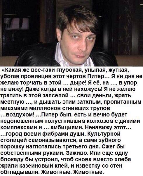 Date: 2017-02-18 04:39 pm (UTC)Говнюк, назови хоть одного московского в Кремле, даже в московской мэрии нет ни одного москвича. Если не назовешь, то прямо здесь и сейчас объявляю тебя пиздоболом. Там все только из Пидера, других нет и не будет.